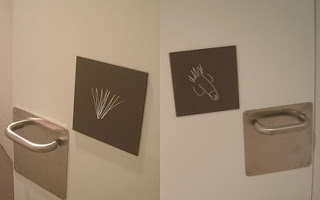 There's also a cafe near me in Delhi that has a picture of a peacock on the gents and a cat on the ladies. It took me a while to choose the right one, and even now I'm uncertain why they chose a cat...